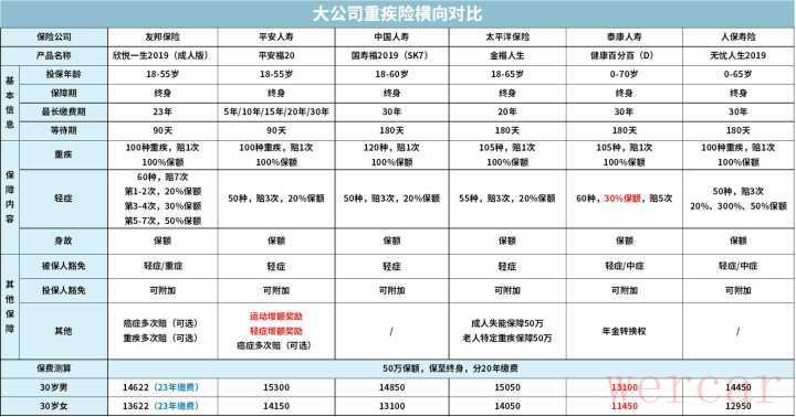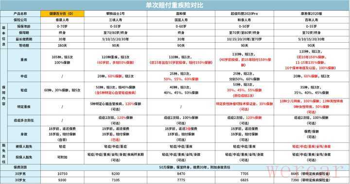 我特意选了最知名的老六家的重疾类产品,做个简单对比: