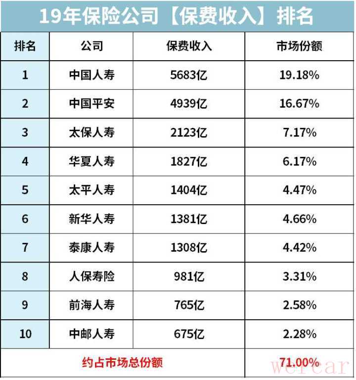 仅这十家保险公司就占到了市场份额71%左右,留给剩下一百多家保险公司的份额还不到30%,