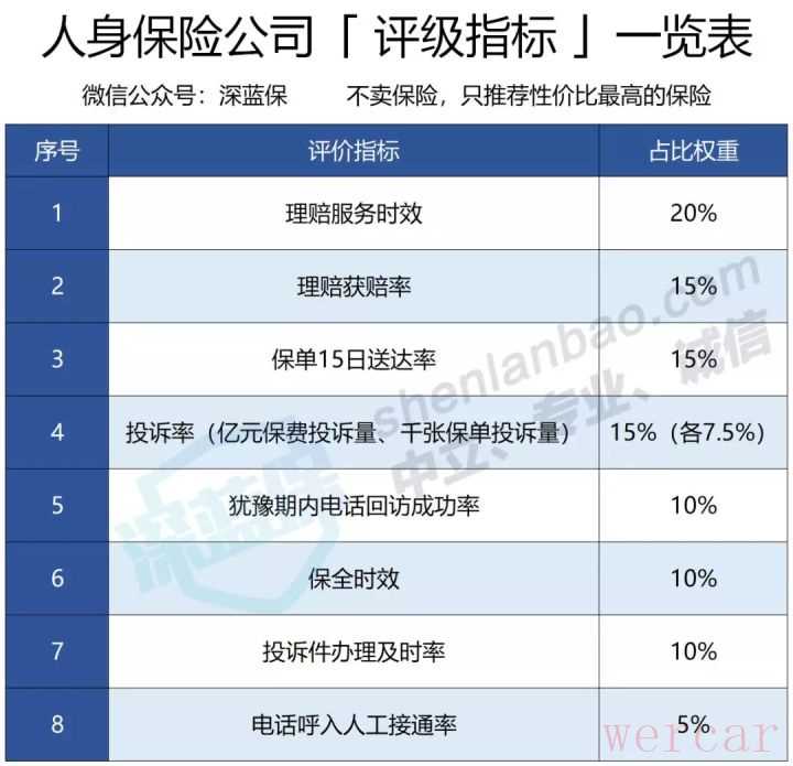 除此之外,保单送达时效、业务办理的速度、电话接通率等,也会影响服务体验,因此都纳入到评级。