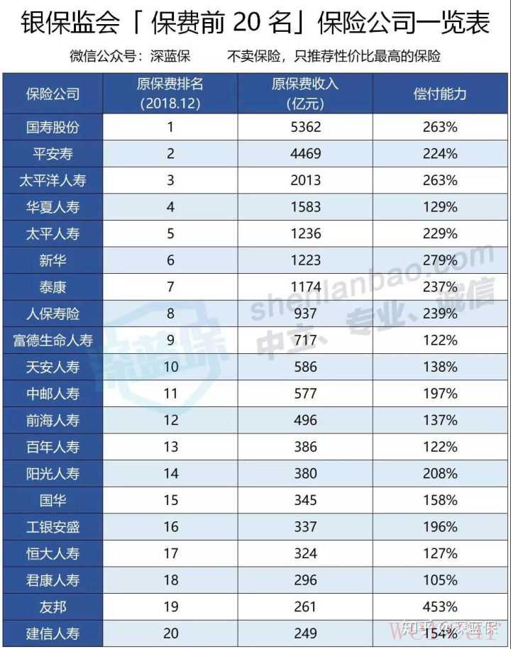 你选富豪排行榜,要看资产,那么你为保险公司排名,保费收入自然也极重要。