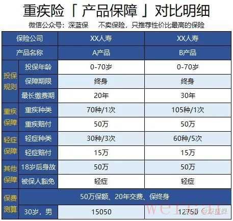 这在保险行业也同样适用,一家公司同时有十几款重疾险在销售,不同产品保障内容差异很大,并不是越贵就越好。