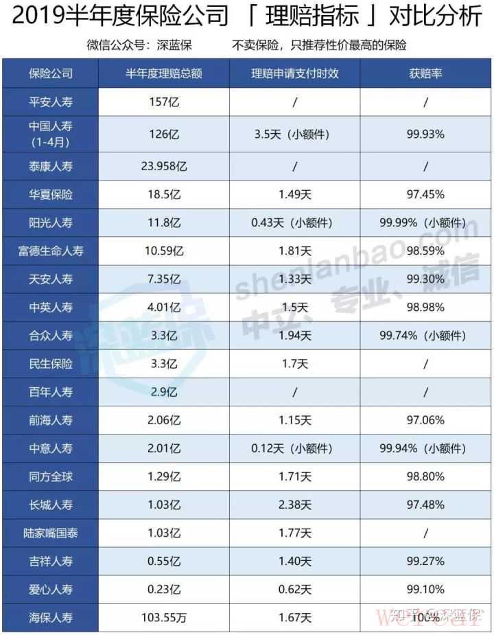 根据理赔的数据来看,无论是我们经常听到的大公司,还是不常见的吉祥人寿、爱心人寿等公司,在理赔的速度上整体差异不大。