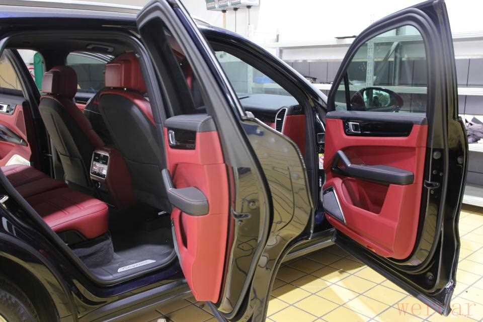 说回正题,我的卡宴内饰。全黑,没加钱。刚买的时候还挺满意的,新款科技感比较强。比Q5开很多,操控性能可以,毕竟保时捷是做跑车起家的。开过一段时间,朋友一直取笑我,这么贵车,连真皮内饰也没有!其实买车的时候也挺喜欢黑红内饰的,当时有现车的其他配置我又不喜欢。可能是被朋友说几次,心里也就有根刺,一直想要改。价格也解过。一万多到3万多的都有。最后让我定决心的是一个朋友和我说,车子就像房子一样,有风水的!搞!