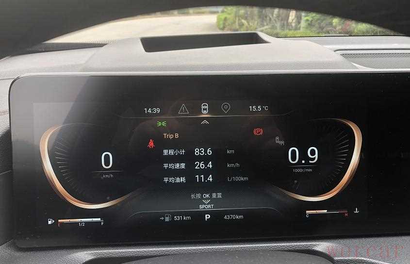 油耗也是大家比较关心的一个方面,我们本次试驾的是四驱车型,官方给出的油耗为8.5L/100km。而本次试驾,车上有四个人,试驾路段为高速、市区和部分山路,整体拥堵比较多,所以会比较费油,表显油耗是11.4L/100km。
