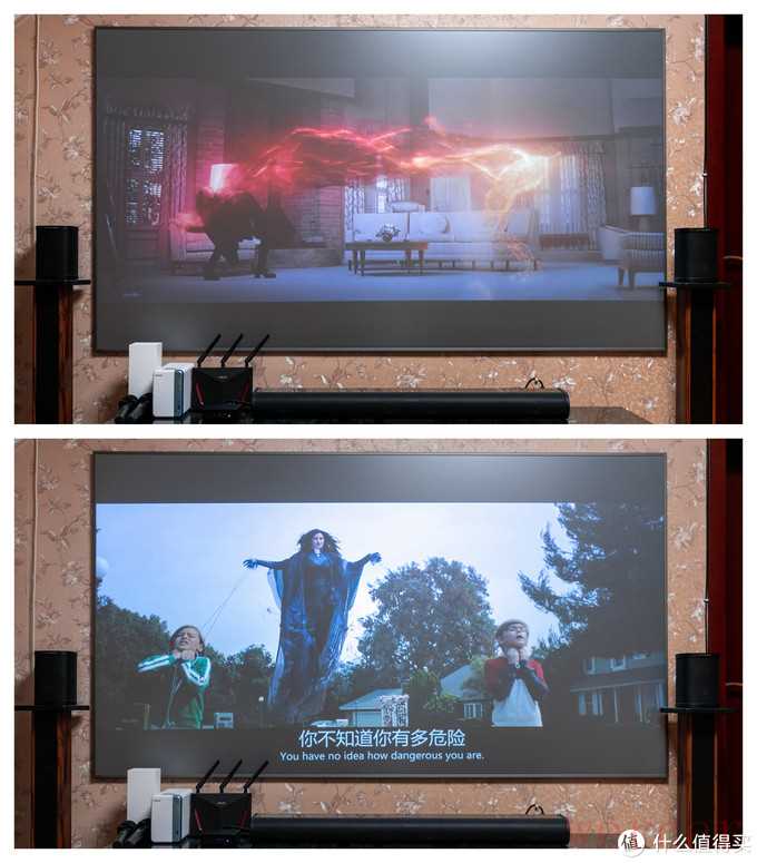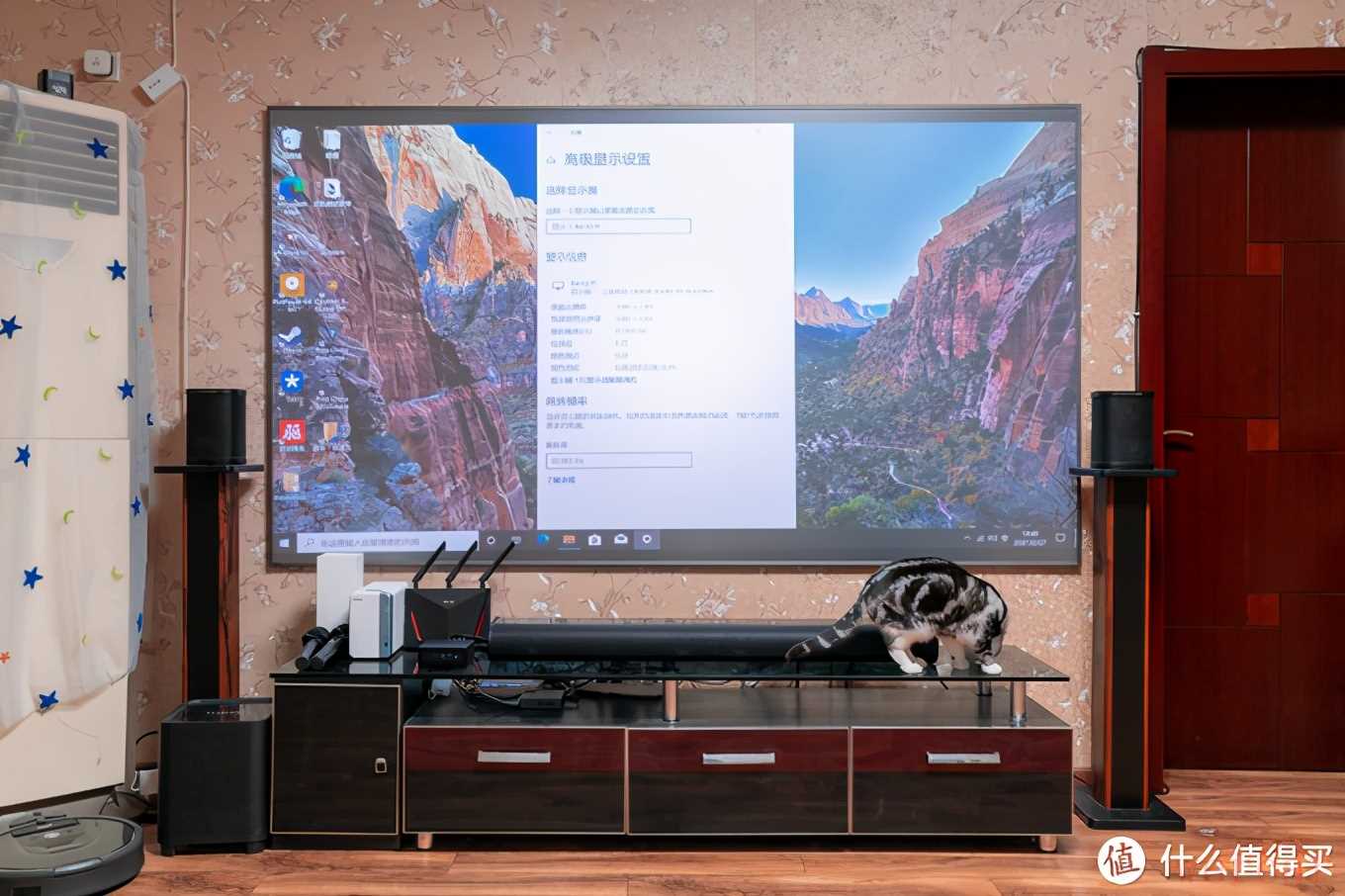 可以看到 intel 猎豹峡谷 NUC 连接投影仪后成功输出 4K@60Hz 的画面,而且我家还有一套 5.1 声道的家庭影院,NUC 也可以进行高品质的音频输出,不过 HDMI 需要先接入家庭影院,然后再输出到投影仪上。
