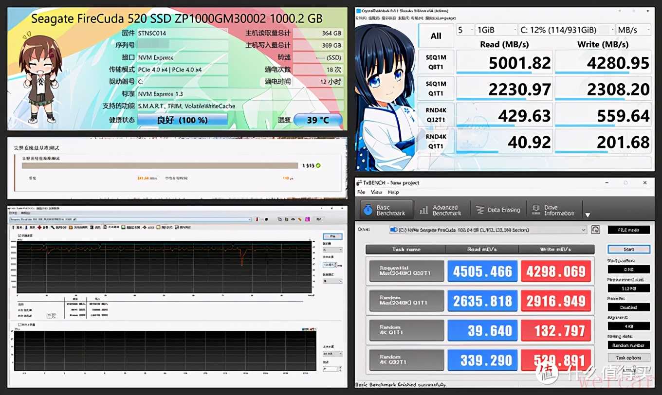 SEAGATE 希捷 FireCuda 酷玩 520系列 M.2 NVMe 固态硬盘 1TB希捷酷玩 520 SSD 使用的是 PHISON 群联的主控芯片 PS5016-E16,缓存芯片是 2 颗海力士的 512MB 颗粒,组成 1GB 的缓存空间,闪存颗粒则是 2 颗 东芝 96 层 3D TLC 颗粒。