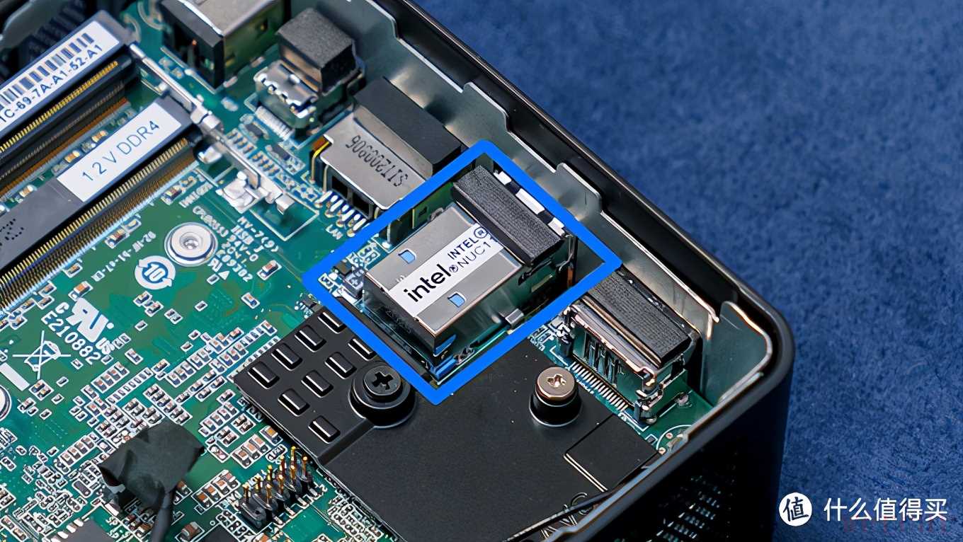 在网卡配置上,intel 猎豹峡谷 NUC 搭载了 intel i225-V RJ45 以太网接口(蓝色区域),能够自适应 10 / 100 / 1000 / 2500Mbps 等不同速率,足以应对目前日益提速的家庭宽带。