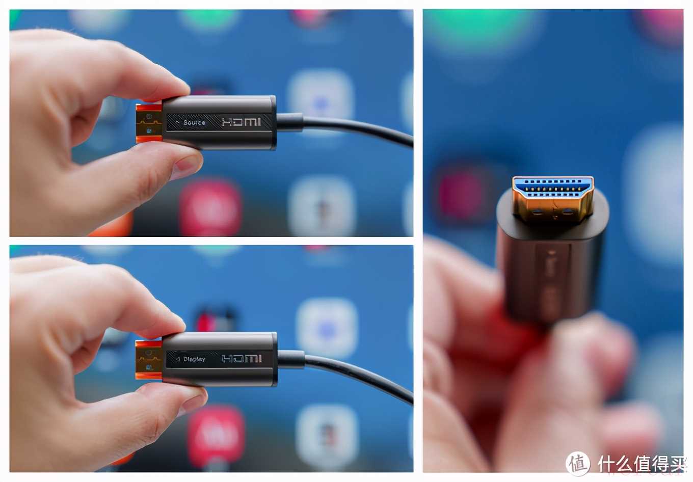 而且绿联光纤 HDMI 2.0 还区分了发射端(Source)和接收端(Display)便于用户确认好方向。接头的外壳是锌合金,硬度和抗拉强度均要高于铝合金,接口也进行了镀金工艺,可以有效防止氧化。