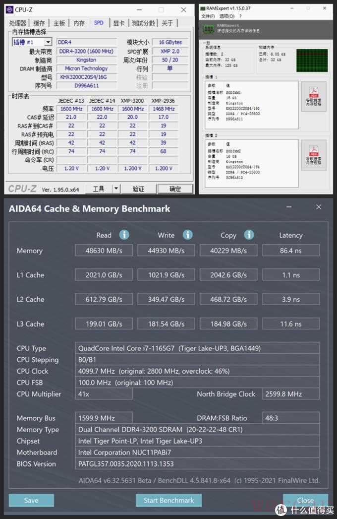 【内存】:2 根 16GB DDR4-3200MHz 高频内存组成的双通道,内存时序为 20-22-22-48 CR1,时延 86.4ns,内存读写、拷贝速率分别为 48630MB/s、44930MB/s、40229MB/s,速度杠杠的。有的朋友肯定还会关心是否有必要入手高频内存。其实对于普通用户来说,高频内存是有性能溢出的,常见的软件差距不大,感知不强,内存容量的优先级更高。但是对于专业用户而言,高频内存会带来更强的内存读写性能,在素材加载、成品渲染导出时还是会更有优势一些,可以考虑在容量的基础上尽可能挑选高频率。
