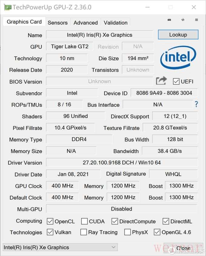 - 【显卡】:intel Iris Xe 核心显卡(96 个 EU 单元,1.3GHz)