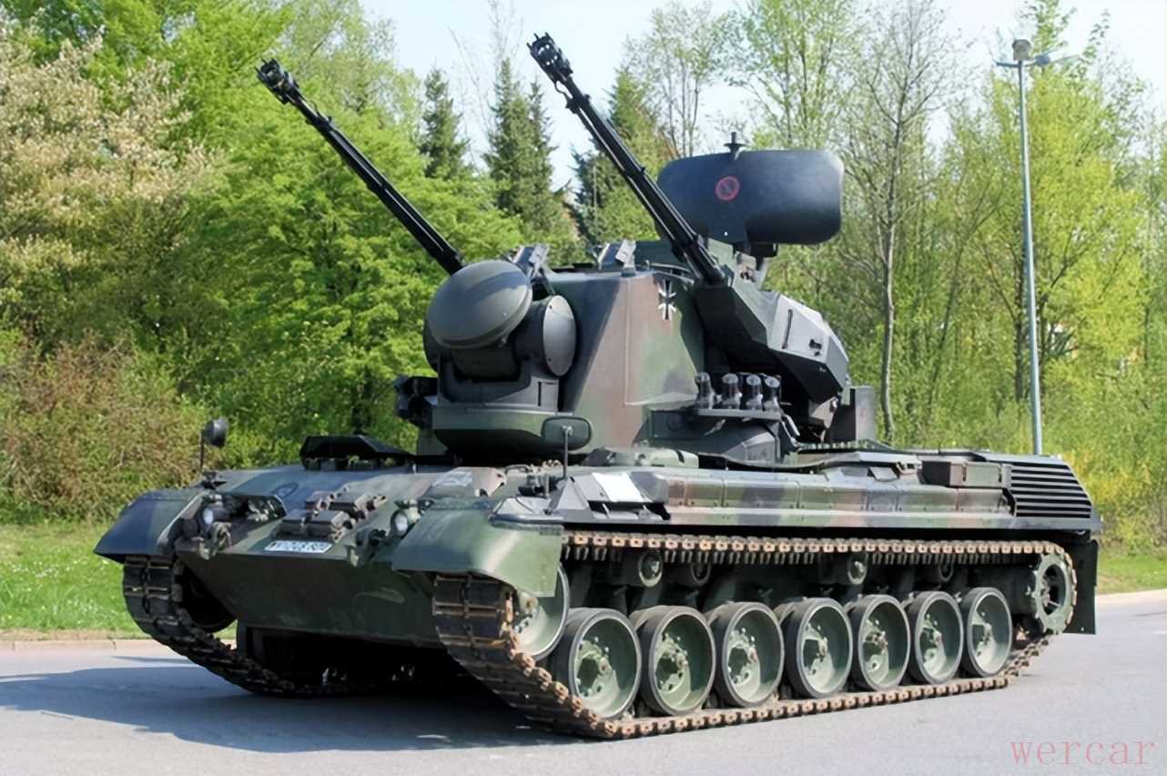 德国在防空坦克领域非常有建树,二战时期就诞生了多款著名的防空坦克,比如大名鼎鼎的球形闪电,旋风防空车等,它们很多都是基于坦克底盘改造的,战后,德国发展的第一代坦克豹1,自然也成为新一代防空车的平台,它安装两门35毫米防空炮,射速非常快,能够有效射击低空飞行的目标,跟美国火神20毫米防空炮相比,猎豹的火力高出一大截,并且它还有对空搜索雷达。