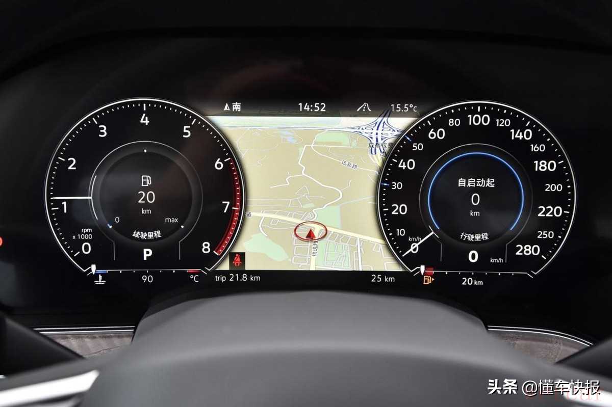 除了两块大尺寸屏幕,途锐还有HUD抬头显示功能,能显示车速、巡航以及导航信息,让驾驶员可以视线不离开前方路况就能了解行车信息。