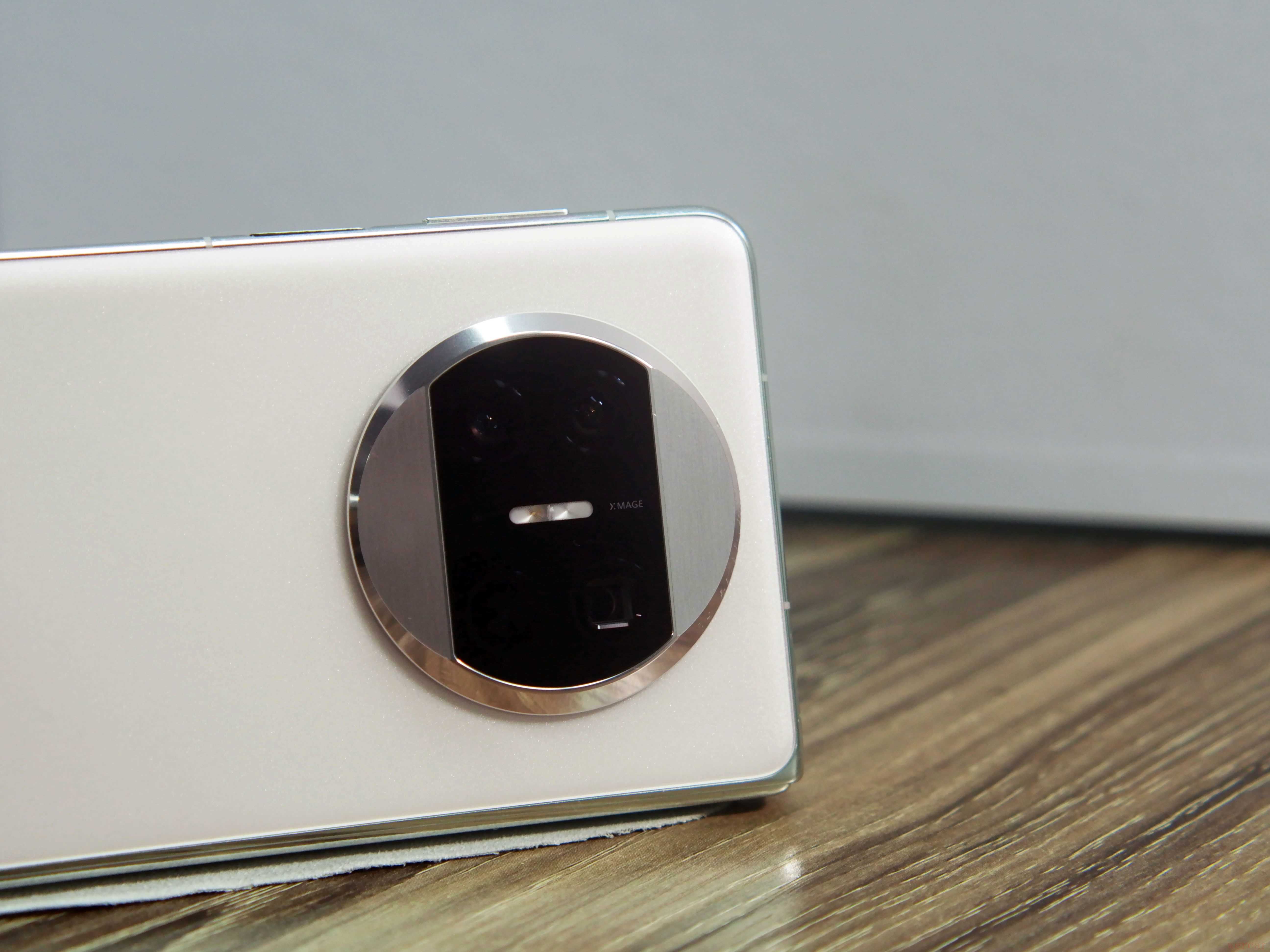 至于后摄Deco这块,这次华为Mate X3采用了所谓「寰宇舷窗」设计。说着玄乎,但本质上就是在经典的华为居中圆环四摄Deco之上,加入了上下侧两条拉丝金属切边设计。说起来轻松,但是这点简单的变化,却在继承家族设计的情况下,通过两种不同质感的金属材质把高档的质感拿捏住了,观感非常不错。