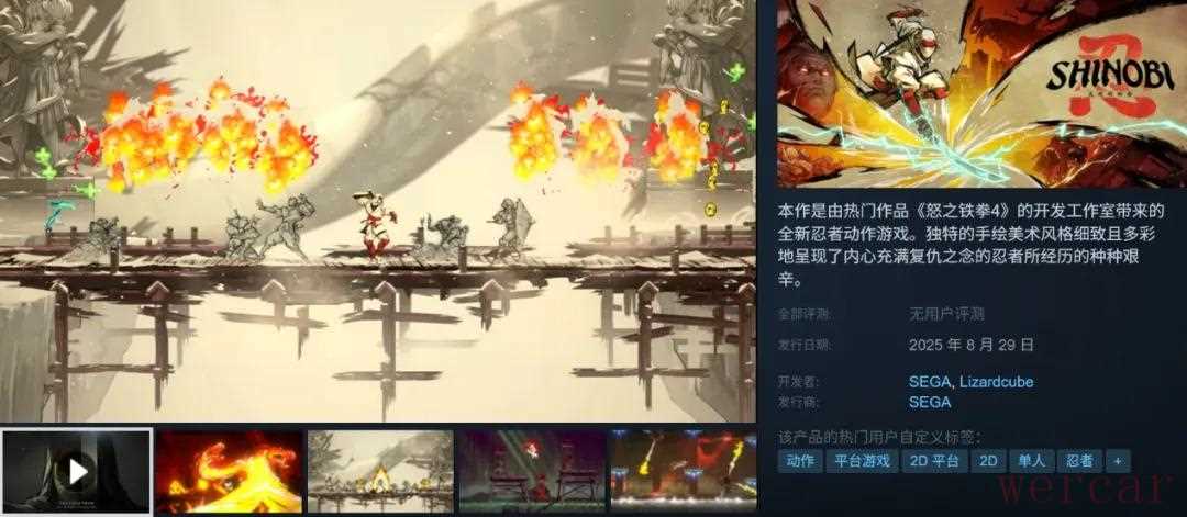 通过这种方式,我们不仅能够在移动、PC、主机等平台上不断拓展游戏内容边界,也能够让《索尼克》以T恤、玩具等多种形式出现在玩家的生活中。我们认为像这样多元化的路径,可以让玩家以不同形式跟IP建立联系,从而进一步提升IP的价值和玩家对品牌的喜爱程度。同时,我们也希望未来能让全世界更多玩家体验到世嘉IP带来的乐趣。游研社:世嘉旗下还有不少其他老牌IP。您如何看待游戏业界的“复古潮”?包括“对老游戏进行重制”“以新作来复活老IP”等等做法?内海:我认为“复古潮”不仅出现在游戏领域,时尚、音乐等文化领域也正在经历“复古潮”。对于年轻一代来说,接触到过去的游戏,可能会得到一种全新的感受;而对于曾经亲身经历过的人来说,重新看到这些游戏能够唤起一种怀旧的情感。按照周期来看,一部二十年前发布的游戏作品,当年五到十岁的玩家,如今已步入二十至三十岁的阶段。对于这一代人来说,曾经陪伴他们成长的游戏如今带着怀旧气息回归,自然会产生“既怀念又想重新体验”的情感。基于这样的趋势,世嘉也在积极投入到经典项目的复刻与重新开发之中,比如在2023年的TGA上,世嘉发布的“Power Surge”短片,就收获了很多玩家的关注和反响。通过这些反馈,我们也进一步确认了,确实有大量玩家希望以怀旧的心情重温经典之作。另外, “Power Surge”计划首个推出的项目《SHINOBI 反攻的斩击》,预计将在今年夏季正式发布,我们也期待这部作品能够获得中国玩家的喜爱。