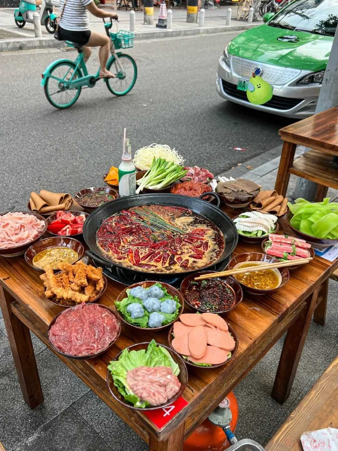 等到锅子里腾起热气,各种食材便可下锅。脑花、鸭血之类的先下锅慢煮,鸭肠、黄喉、脆毛肚则要“争分夺秒”,以免过了口感最佳的时间。