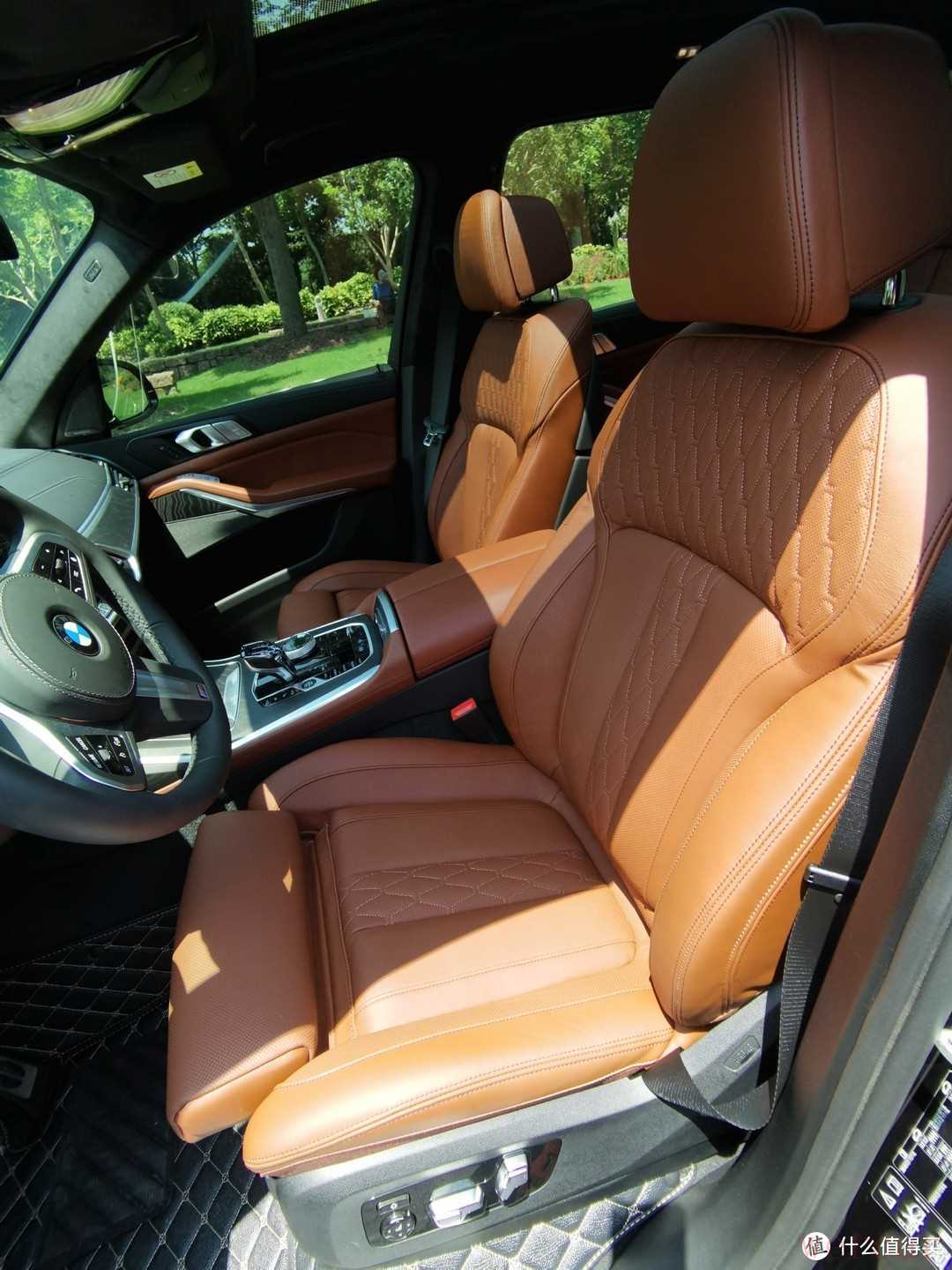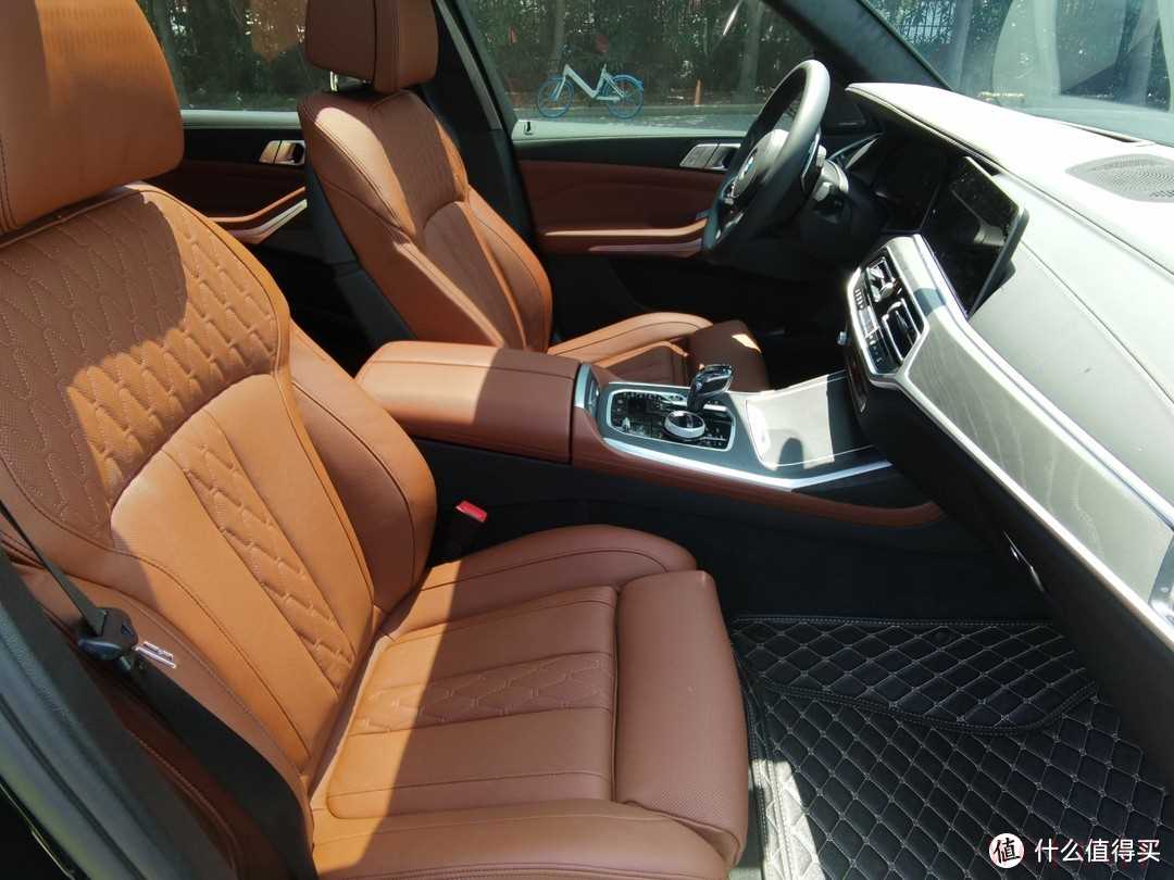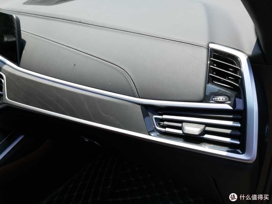 内饰确实很平淡,和奔驰的设计比不了,但是比之前的宝马内饰已经是顺眼很多。仪表板、车门大部分都是napa真皮覆盖。座椅是松露褐Mirano真皮,比奔驰还是厚道很多