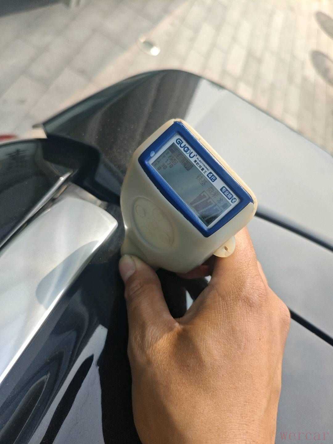 再测测车顶,前半部分还好,可快到右后边缘时,数值突然跳到500-600μm!车顶也钣金喷漆了!
