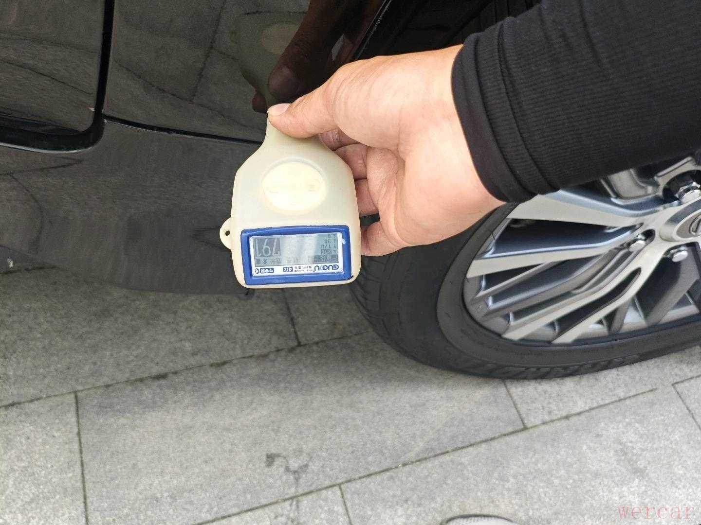 只见我手中的漆膜仪刚搭上右后叶子板,数值就“蹭蹭蹭”地往上窜,移到轮眉位置的时候,数值竟然超过了800μm!妥妥的钣金修复加喷漆。