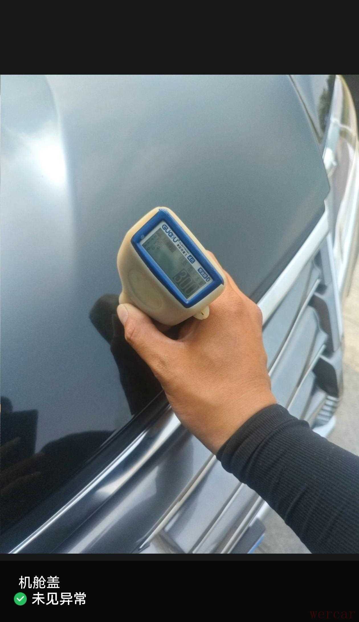 随后我拿出漆膜仪在机盖上测量了一下,数值很稳定,这说明漆面完好。