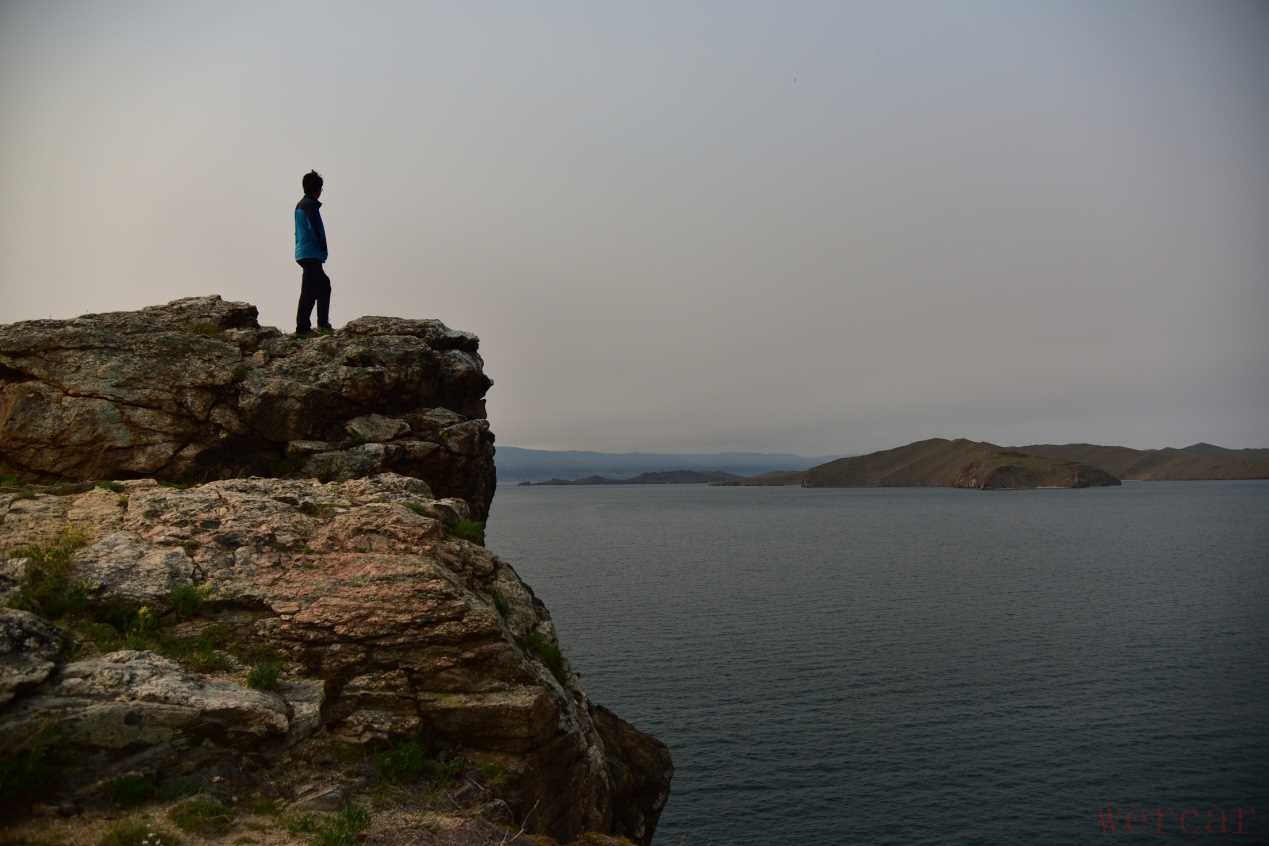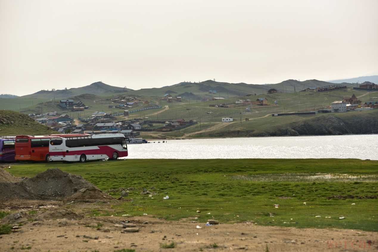 经过一百多公里的公路驾驶,我们来到了前往奥利洪岛的渡口,也终于看到了贝加尔湖。贝加尔湖是世界第一大淡水湖,有多大?它蕴藏的淡水量够人类喝50年!登上一座较高的山坡,目光可以放到更远,我也顺道在日志中出个镜。