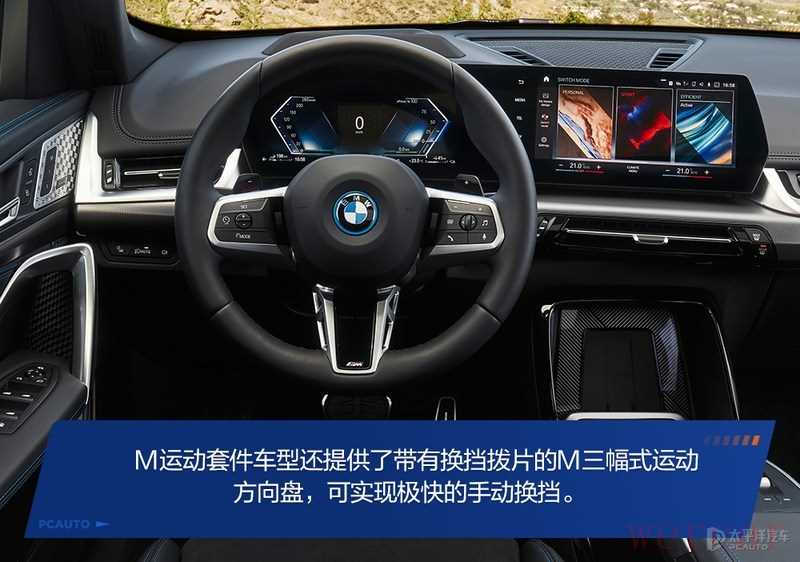 此外,配备M运动套件的车型,还将采用带有换挡拨片的M三辐式运动方向盘,其配备的方向盘换档拨片可实现“极快的手动换挡”。换档拨片还可以启用名为“Sport Boost”功能,当驾驶员拉动左侧换档拨片至少一秒钟时,该功能就会被激活。激活后,车辆将会调整至最激进的模式,以实现最快的加速。