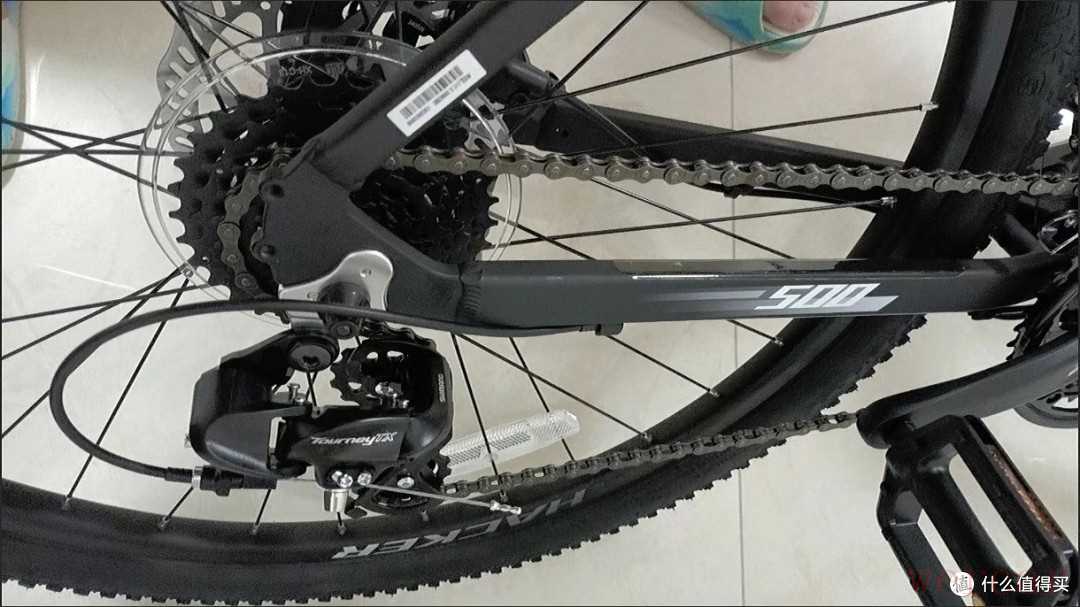 喜德盛黑客 500 的铝合金内走线车架,确保了车架的质量与美观。变速系统采用禧玛诺 Tourney 与蓝图 A3 混搭的 24 速变速器,在一定程度上丰富了变速体验。值得一提的是,该车配备可锁死避震前叉,在平坦路面可锁死前叉,提升骑行效率;在颠簸路面打开前叉,增强避震效果。刹车系统为内置油压碟刹。