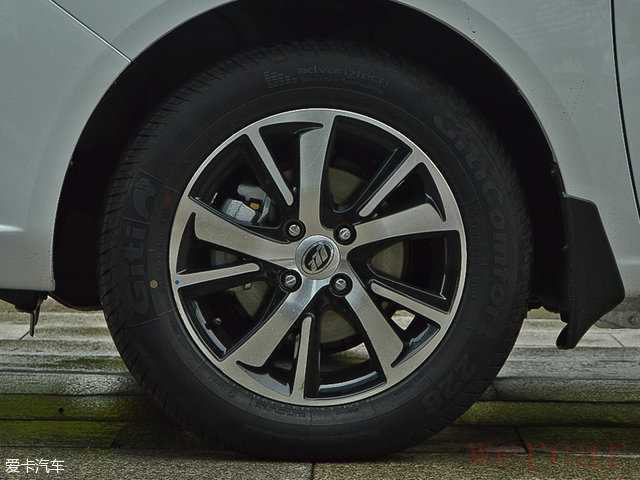 实拍车型配备了15寸双五辐合金轮圈,双色设计看起来非常动感。轮胎方面采用的是佳通(GITI)的Giticomfort系列轮胎,规格为195/60 R15。
