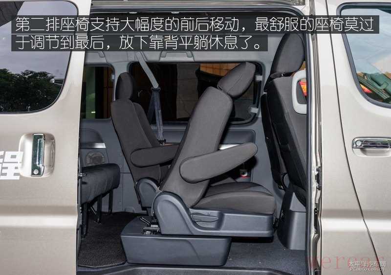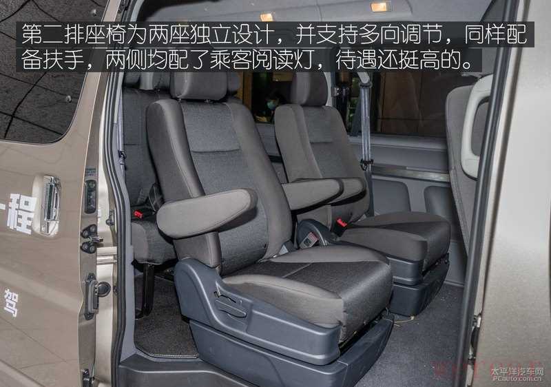 内饰同样能体现出商务与实用,从细节可以看到金杯海狮王的设计已经向乘用车靠拢,例如:三辐式多功能方向盘、10英寸触摸中控屏、全包裹的座椅、独立后空调和氛围灯等,试驾车型的第二排座椅还配有独立的扶手。
