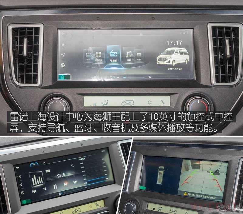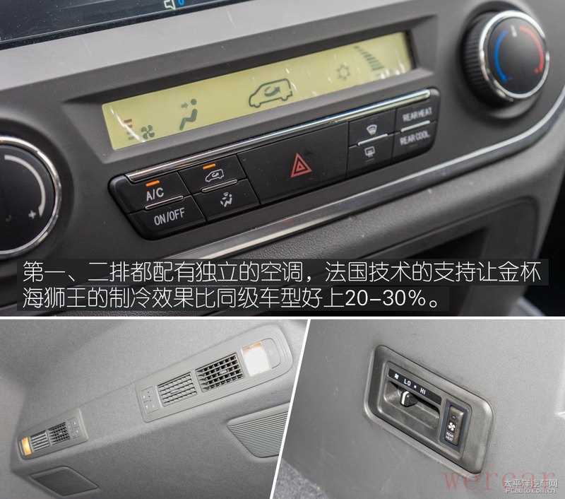 "舒适的车内环境:" 金杯海狮王配备有冷暖空调、独立后空调出风口、座椅加热等功能,可以满足不同乘客的需求,保证车内环境的舒适度。