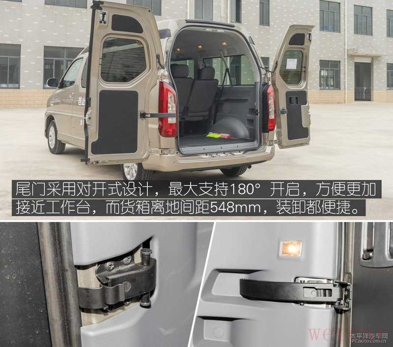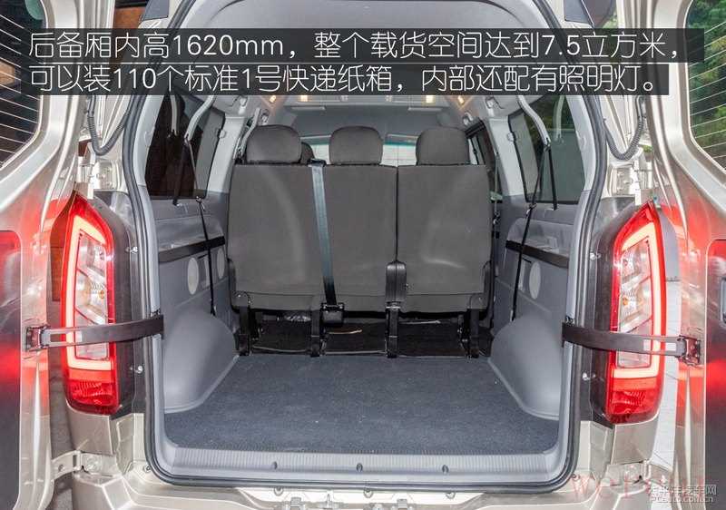 金杯海狮王拥有多个版本,载货之用可以选择城运王系列,两座版车型提供了7.5立方米的载货空间。而试驾车型同样拥有非常大的后备厢空间,值得一提的是,金杯海狮王的尾门支持最大180°的开启角度,装载货物更加方便。