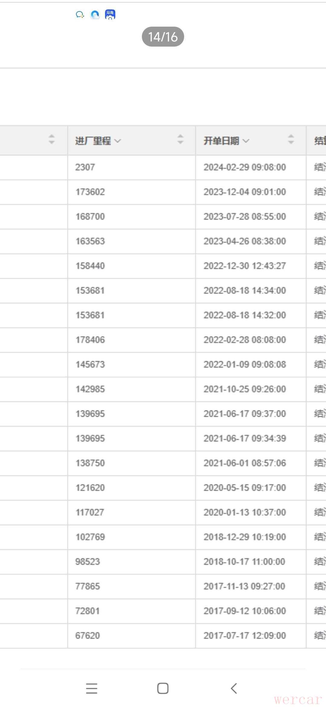 于是便让公司总部客服帮忙查了一下这辆车的维保记录,好在这车全程都是在4S店保养维修,所有记录都在,最后一次进店是23年12月份,那时候的公里数是17万多,现在表显15万公里,OBD读出来是20多万公里,综合所有数据来推测,这台车存在调表,大概调了5万公里。