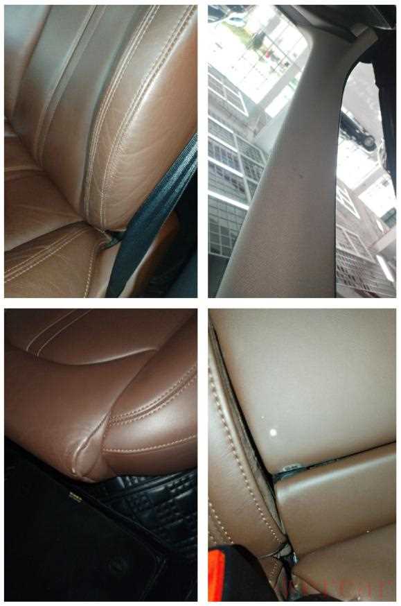 内饰检测下来有破损的地方,主驾驶座椅腰托位置存在掉皮,不过磨损看着不是很大;前A柱饰板上可以看见破损,看痕迹应该是抽烟烫的;后排座椅腿拖位置也掉皮了,座椅中部夹缝位置也是可以看见皮子被烫坏的痕迹,应该也是抽烟导致的……看得出来,烟可真没少抽!