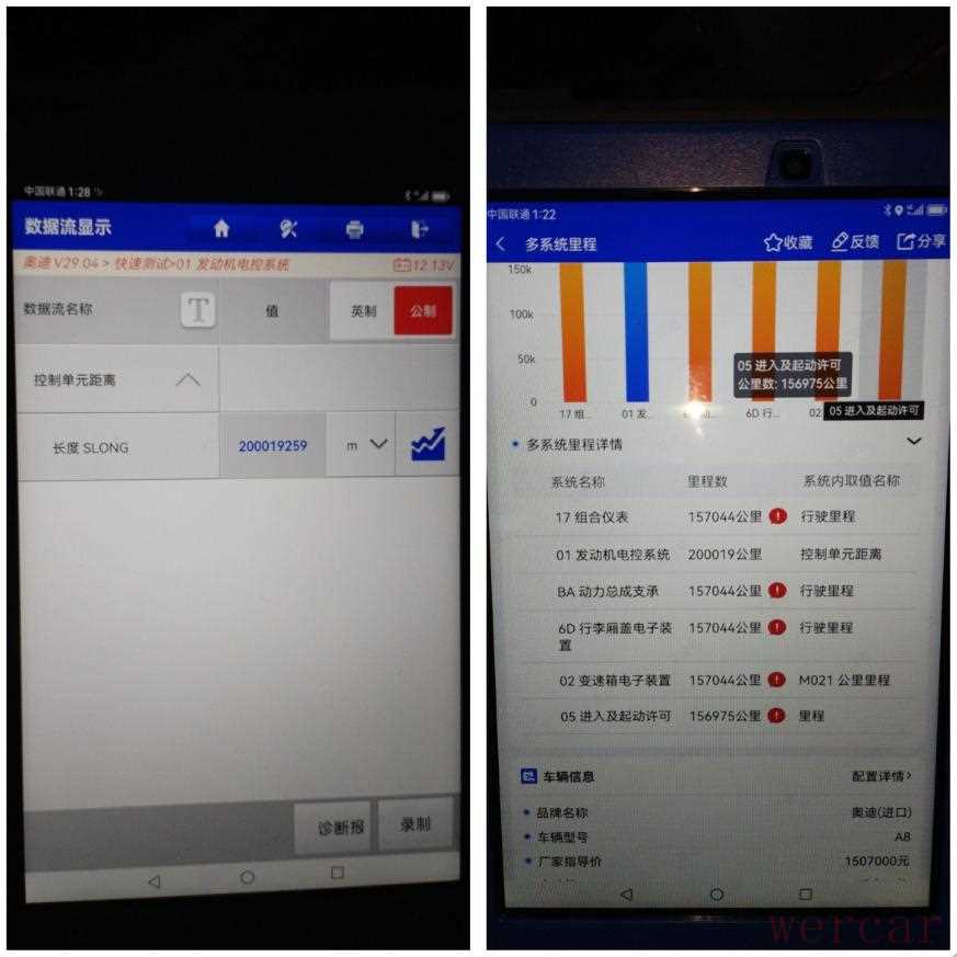 OBD检测到该车辆的电脑数据里程存在异常,表显15万公里,而我这边读取到的里程已经来到20万公里了,相差了5万公里……