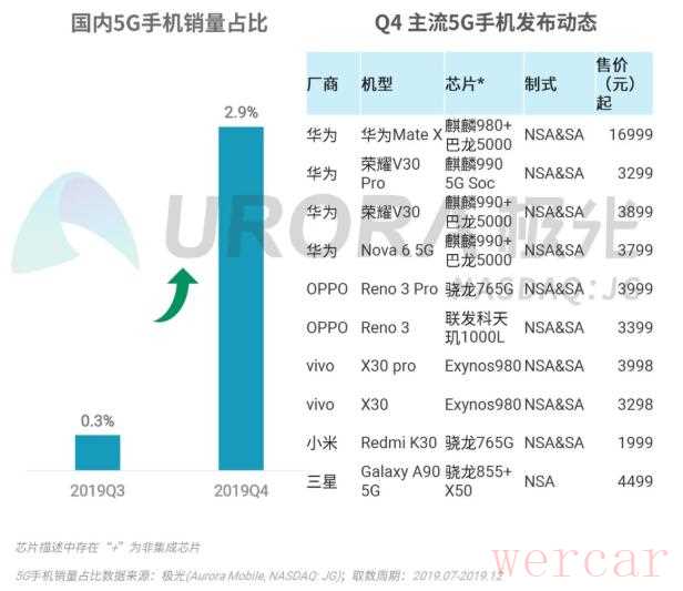 然而,在5G手机业务上,酷派已晚一步。极光数据显示,截至2019年Q4,中国主流手机厂商均有机型覆盖5G手机市场,且Q4的中国市场5G手机销量占比较上一季度增长近10倍,达2.9%。