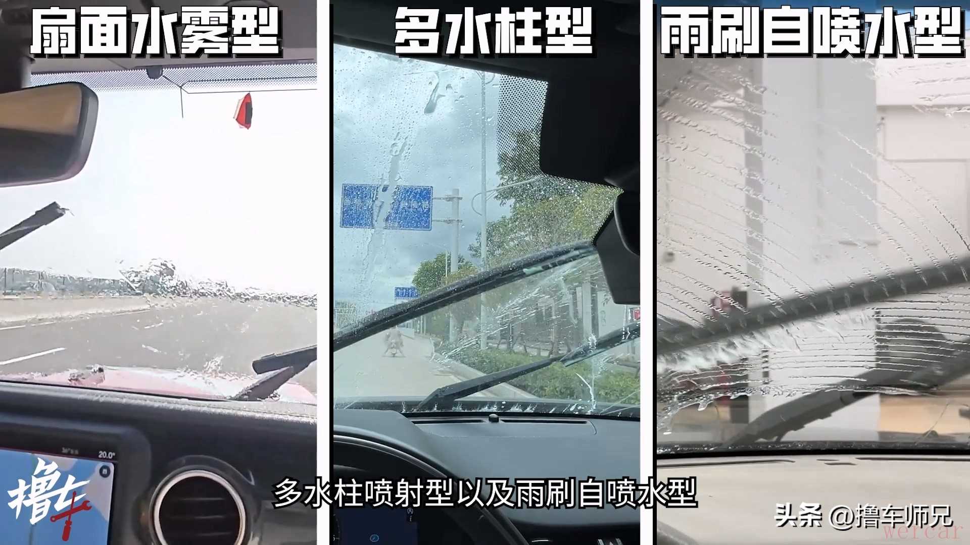 目前主流的玻璃水喷射模式有三种:“扇形水雾型”、“多水柱型”以及“雨刷自喷水型”,扇形水雾虽然雾化效果好、覆盖面积大,但是长时间喷射,特别是晚上使用时,会造成短暂的行车视野丢失,有一定的安全风险;最常见的多水柱形喷射,虽然安全系数高,但覆盖面积太小,水柱喷不到的位置,清洁效率很低,非常浪费玻璃水;而能够兼顾玻璃水覆盖面积,而且不遮挡行车视野的雨刷喷水模式,由于硬件成本比较高,目前主流车型里,只有Model X、奔驰和沃尔沃等等少数高端车型在使用。