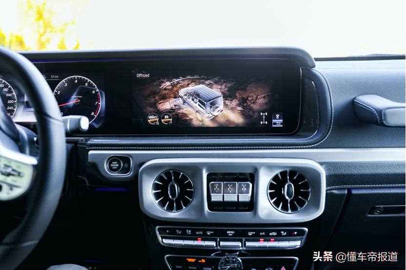 动力方面,G350搭载了2.0T涡轮增压M264发动机和9速手自一体变速箱。最大功率258马力,峰值扭矩370牛米,还有低速四驱2.93倍的扭矩放大功能,放大之后扭矩能够超过1000牛米,动力非常充沛。在不太复杂的路面,完全可以靠怠速缓慢地通行。0-100公里每小时加速时间8.1秒。驾驶气势和G500的区别还是比较大的。深踩油门,没有了V8发动机性感的声浪,可能需要适应一下。方向盘的手感,在越野路段驾驶适中,但是日常城市开有点偏重。