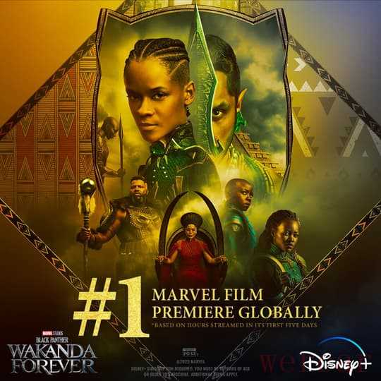 另据美国文娱媒体Variety报道,漫威当地时间2月6日宣布,在流媒体上线5天后,根据播放时长统计,《黑豹2》已成为Disney+全球开播数据最好的漫威电影。