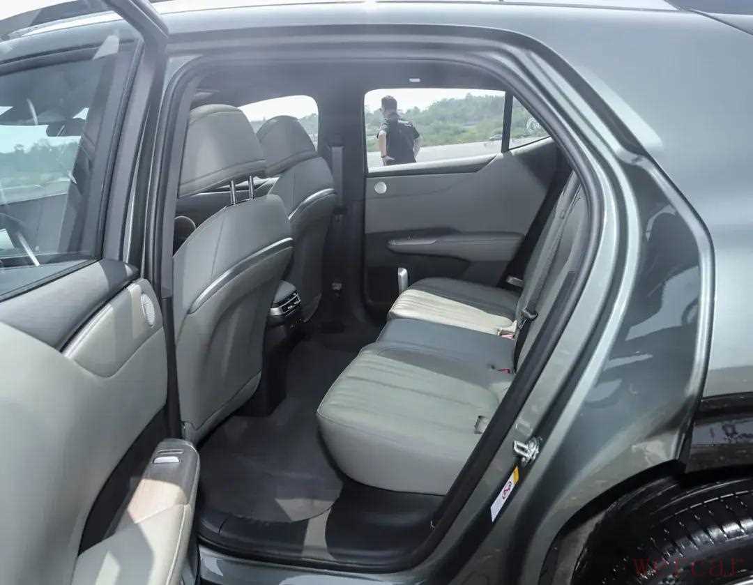 有皮卡的形态,但启源E07的底盘结构和座舱设计,都完全是乘用车的风格。虽然造型比例比较侧重尾箱的长度和空间,但基于3米1的轴距、5米的车长,这款车的乘坐空间也有了基本保障,后排的腿部、头部空间,在中大型SUV里不算突出,但对日常家用来说,已经足够宽裕。