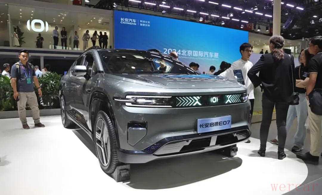 今年的北京车展上,比亚迪王传福到长安汽车的展台参观时,对着一款新车竖起大拇指,夸讲道“这就是创新”。这款车,就是启源E07。