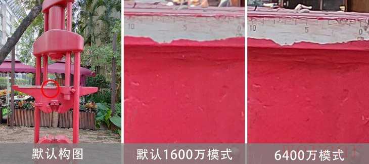 在细节方面,6400万像素模式有着非常明显的提升。从上面的对比图可以看到,6400万像素模式放大后拥有更丰富的细节。虽然默认1600万像素模式已经可以轻松满足绝大部分人的需求,但6400万像素也能给喜欢创作的朋友带来更大发挥空间。