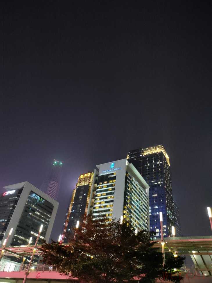 夜景方面,默认模式下画面的明亮度和质感都能保持在不错的水平。默认模式下部分场景对高光部分压制会略微欠缺,不过这种情况在夜景模式下能够得到很好的改善。