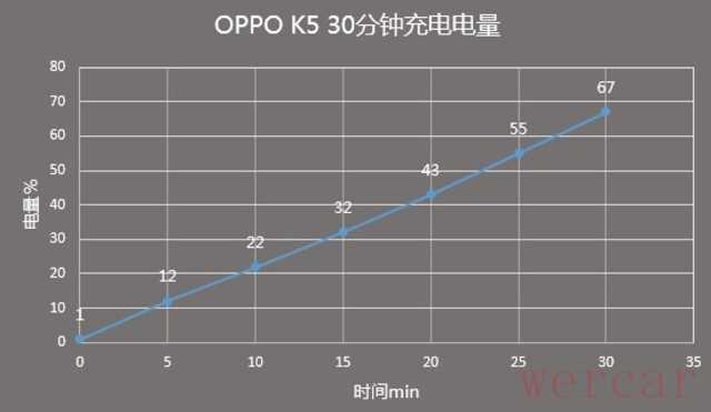 可以看到在5小时重度使用后,OPPO K5依然有53%的电量,相较于我们对K3的测试多剩了11%的电量;充电速度方面,30分钟内我们充进了67%的电量。结合来看,冲半小时电就出门和伙伴吃饭逛街问题不大。