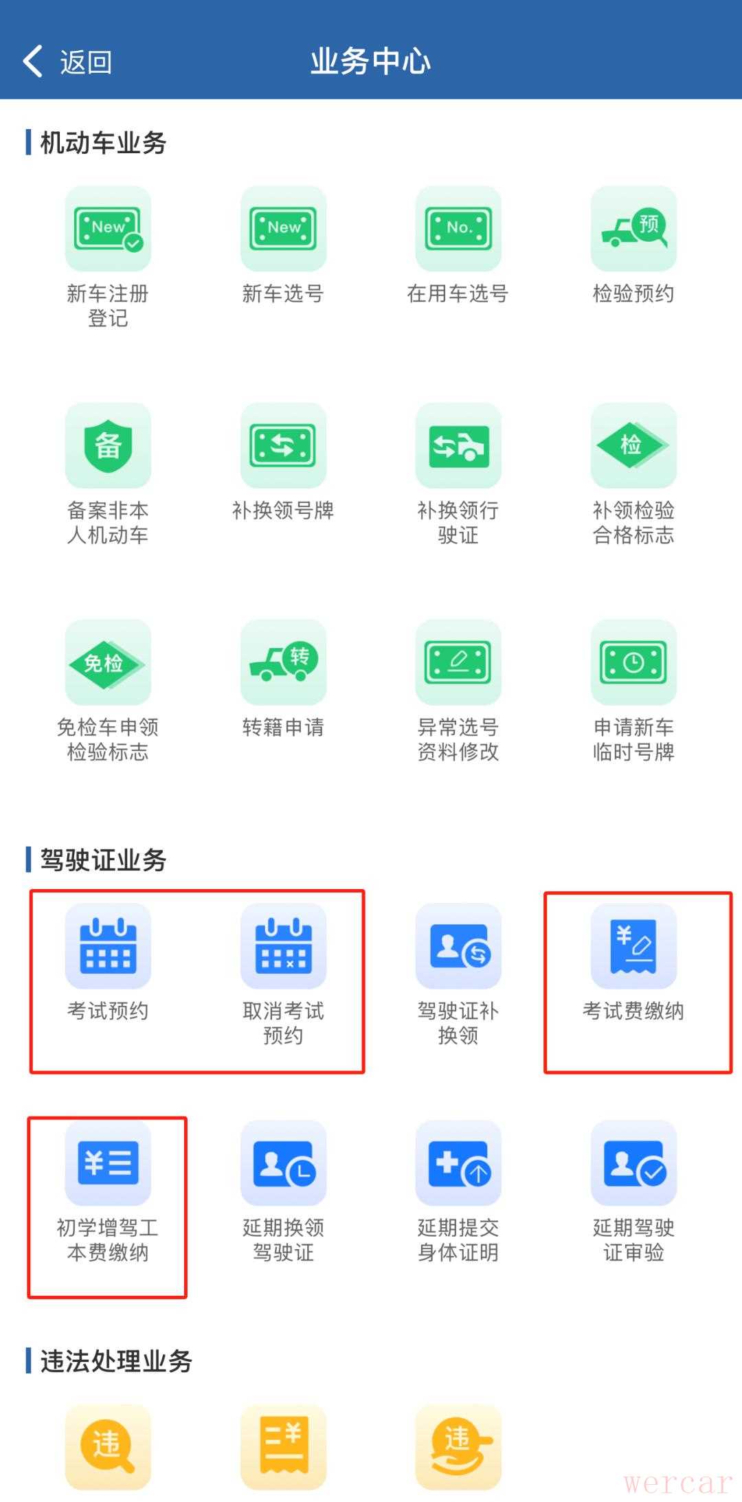 “交管12123”手机APP → 注册登录账号 → 更多 → 驾驶证业务 → “考试预约”等相关业务 → 填写相关材料在线办理。