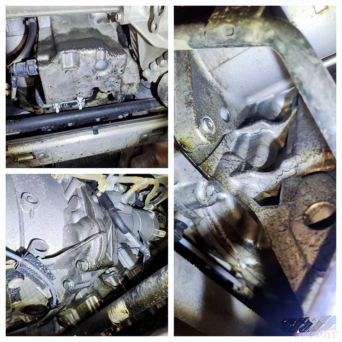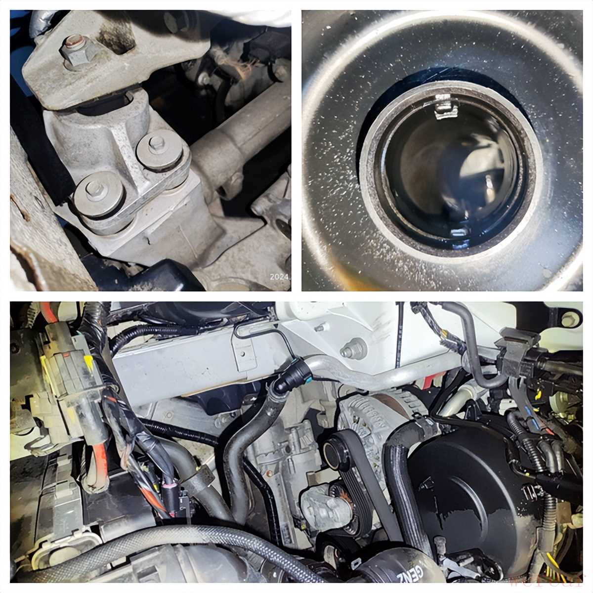 静态的车况还行,但举升起来检查底盘的情况就比较差了,发动机和变速箱绞合连接位置漏油,发动机油底壳渗油,3万多公里怎么会这样?虽然没有调表的直接诶真姬菇,但按照使用逻辑来推论,发动机漏油不合常理。