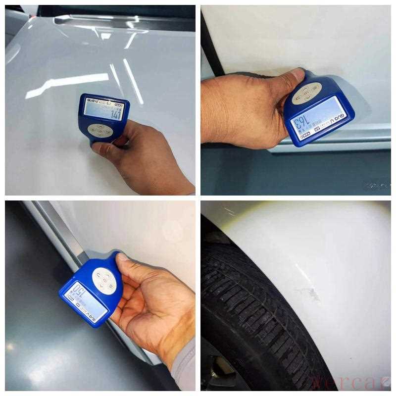 老规矩,漆面检测是我们的第一个步骤。刚刚查这车的车险记录,看到一个全车喷漆的出险,但是我们检测了一圈车身,发现全车除了前后杠其它金属面都是原车漆,个别地方的划伤有点深,抛光没有完全抛掉,看来这车没有喷漆,只是走了个划痕险。