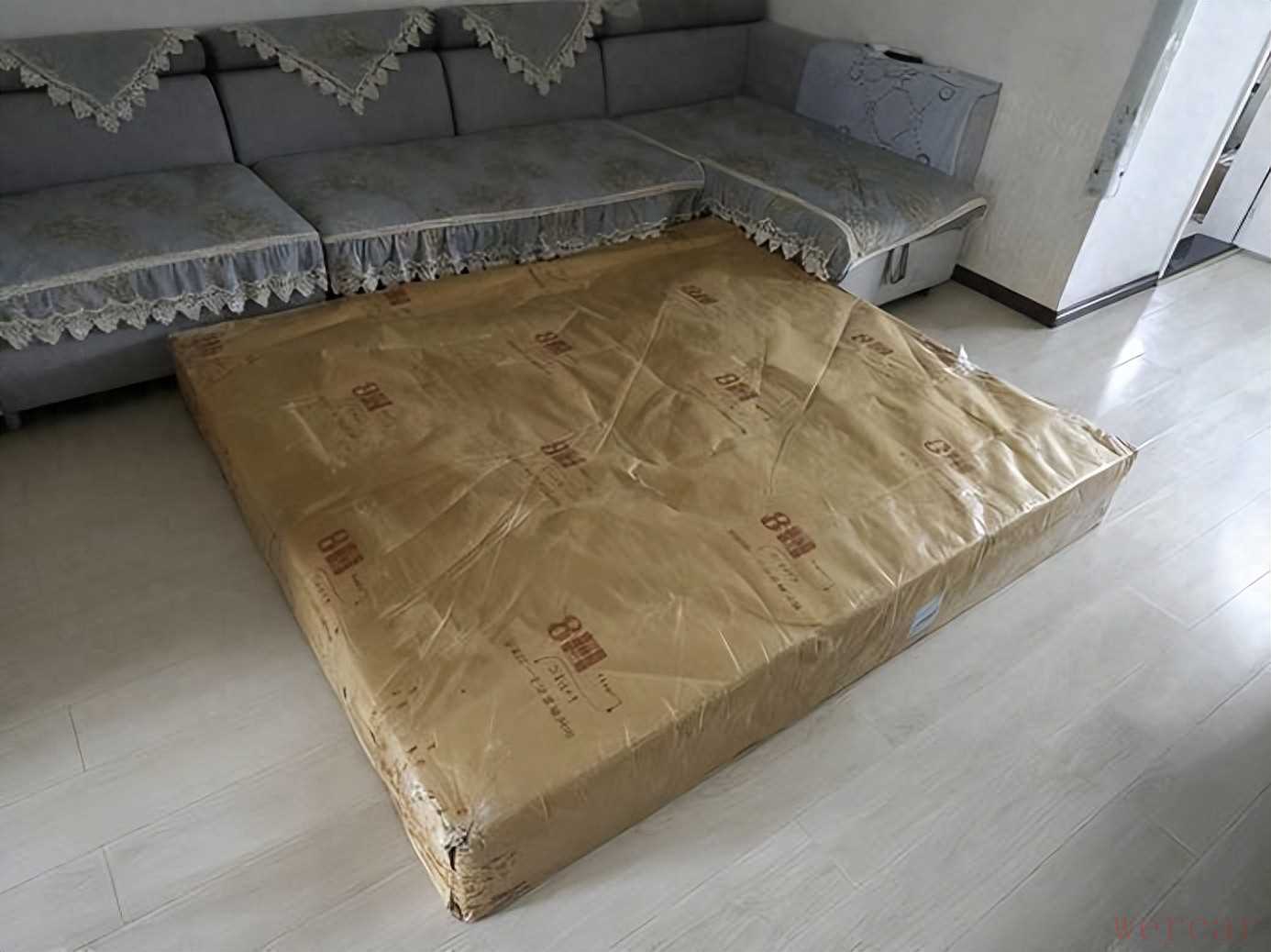 床垫由某邦送货上楼,75公斤!没电梯,三个壮小伙硬抗三楼。不得不说,这看上去简单的床垫包装设计很合理,多层防护,经过1800公里长途运输,又在楼道里辗转腾挪,床垫完好无损。