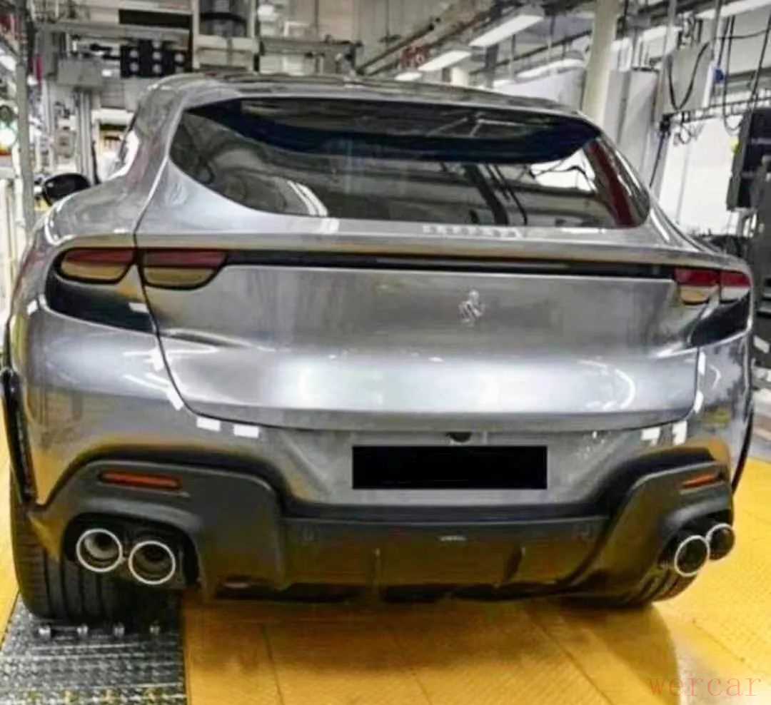 Purosangue的尾部同样十分个性,尾窗尺寸较小,采用夸张的溜背设计,并且后翼子板极其外扩,制造出敦实的宽体车身。中间是贯穿式尾灯条,两侧灯组下方还有类似空气动力学的设计。大面积哑光黑的包围体现了SUV身份,四出排气这种彰显法拉利性能的设计自然也没有缺席。动力方面,Purosangue将搭载一台V12发动机,最大功率超过800马力,十分符合其顶级旗舰SUV的身份。此外为了“拉低门槛”,Purosangue还将提供V8混动、V6混动等动力可选。