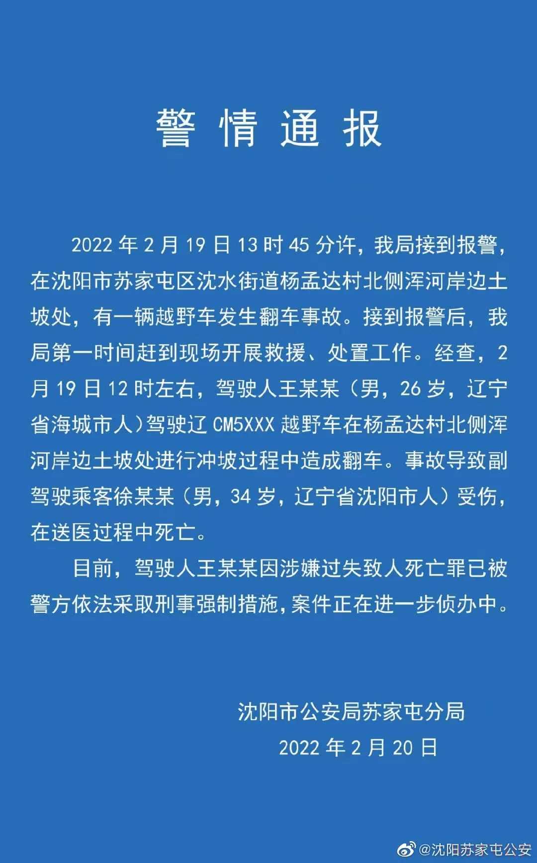 事故发生后,沈阳市公安局苏家屯分局介入调查,并发布了警情通报。目前,普拉多驾驶员王某某因涉嫌过失致人死亡罪已被警方依法采取刑事强制措施,案件正在进一步侦办中。