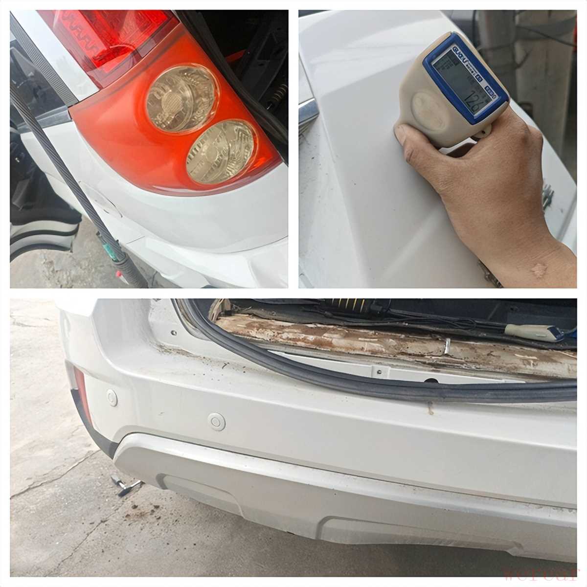 来到车尾,后备箱盖没事儿,但左后尾灯更换了,目前发污掉色,六年的原厂大灯可不会这样;后保险杠就不用说了,很钣金焊接的距离很近,必更换。