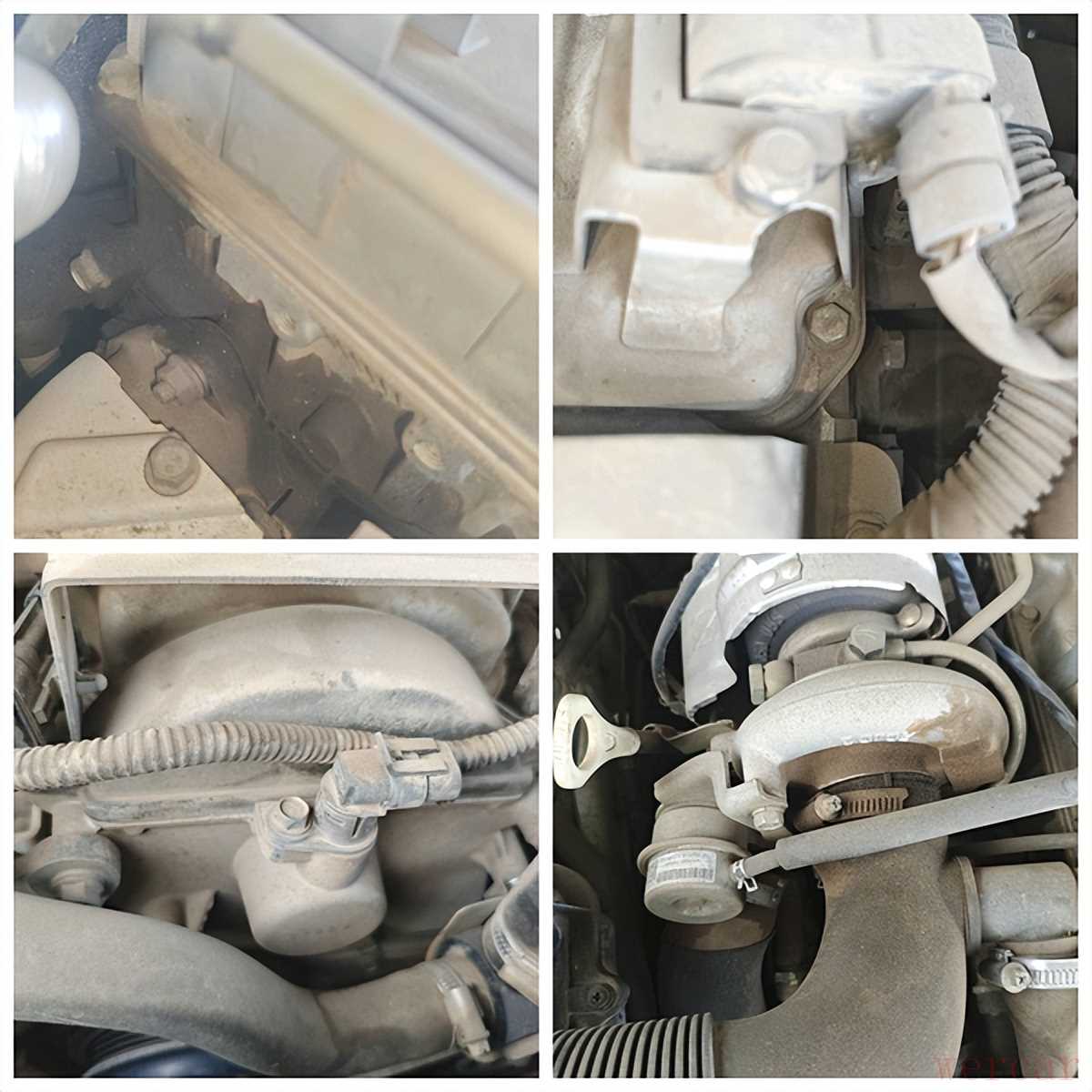 转一圈回到车头,继续检查发动机,整体还好,没有大面积拆装维修的痕迹,就是气门室盖对着防火墙这一侧漏油了,黑乎乎的一片;涡轮增压管接口处也有点渗油,别的都还好,没有积碳,启动之后也没有抖动异响。